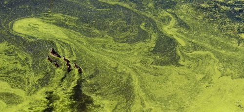 Blaualgen sind eigentlich keine Algen, sondern Bakterien, die sich unter bestimmten Voraussetzungen stark vermehren können. Steigende Temperaturen, wenig Wasserbewegung und ein hoher Nährstoffgehalt (z. B. durch Dünger aus der Landwirtschaft) begünstigen die Entstehung dieser Mikroorganismen. Sie treten oft als grünlich-bläulicher Film oder als Schlieren an der Wasseroberfläche auf, manchmal sieht das Wasser auch einfach nur trüb oder milchig aus.
