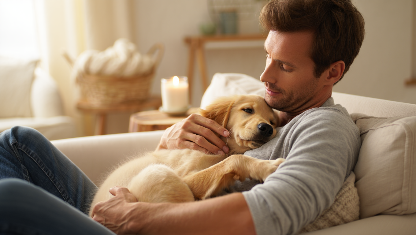 Manchmal reicht es, sich gemeinsam auf das Sofa oder eine Decke im Garten zu setzen und zu entspannen. Sanfte Streicheleinheiten, ruhige Musik oder einfach nur das gemeinsame Beisammensein fördern das Wohlbefinden auf beiden Seiten.