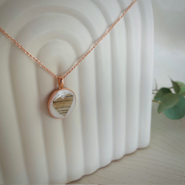 Jedes Stück ist ein Unikat. Verarbeitet werden Materialien, die eng mit besonderen Augenblicken verbunden sind: ein Teil der Kremierungsasche, Haare oder Fell, Schweifhaare, Blüten oder sogar Fingerabdrücke. Durch Gravuren, kleine Symbole oder persönliche Motive wird daraus Schmuck, der nicht nur ästhetisch wirkt, sondern auch eine besondere emotionale Tiefe trägt.